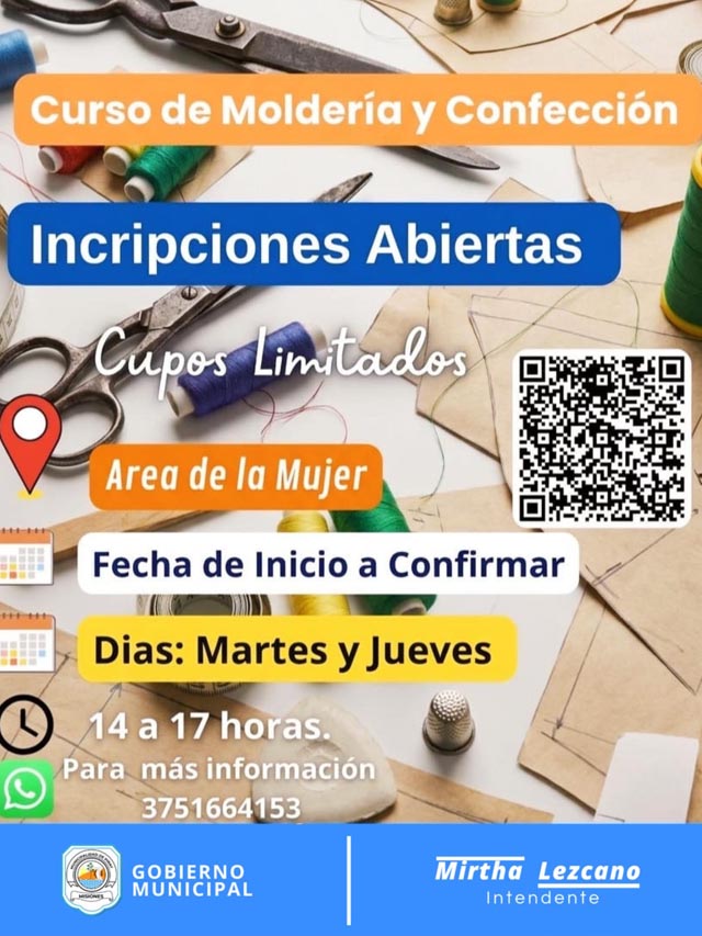 AGENCIA MISIONES.UNO | En Puerto Piray se encuentran abiertas las inscripciones para el curso de Moldería y Confección, una propuesta de formación destinada a quienes deseen iniciarse o perfeccionarse en el mundo de la costura y el diseño de prendas.