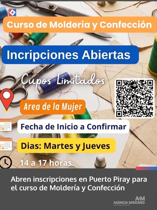 AGENCIA MISIONES.UNO | En Puerto Piray se encuentran abiertas las inscripciones para el curso de Moldería y Confección, una propuesta de formación destinada a quienes deseen iniciarse o perfeccionarse en el mundo de la costura y el diseño de prendas.