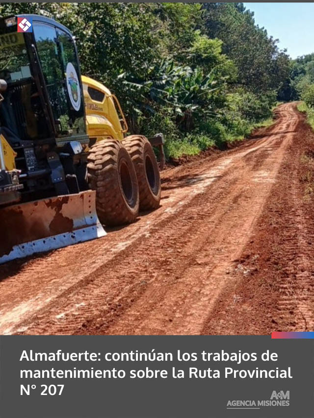 AGENCIA MISIONES.UNO | La Municipalidad de Almafuerte avanza con tareas de mantenimiento en caminos terrados, con intervención sobre la Ruta Provincial N° 207 para mejorar la circulación y garantizar mayor seguridad vial.