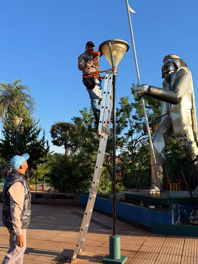 La Municipalidad de Andresito continúa ejecutando tareas de mantenimiento en la plaza central de la localidad, donde se realiza el recambio de focos en distintos sectores. Estas acciones forman parte de un plan integral orientado a la puesta en valor de uno de los principales espacios de encuentro de la comunidad.