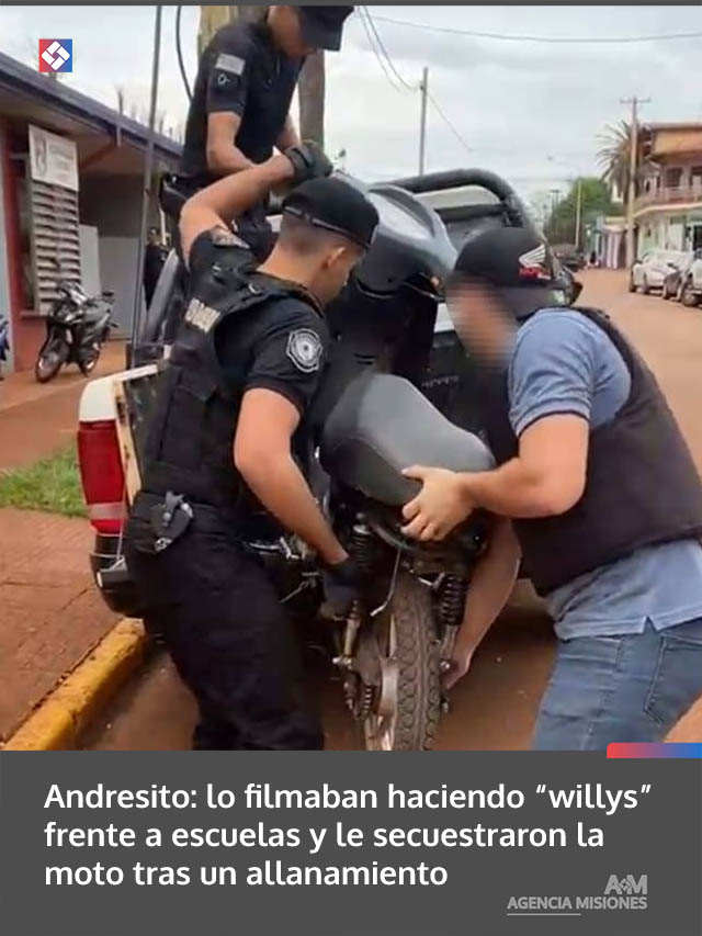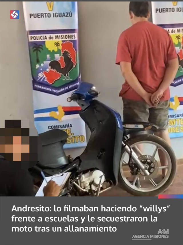 Un procedimiento realizado este miércoles por la mañana en Comandante Andresito permitió a la Policía de Misiones identificar a un joven de 18 años acusado de realizar maniobras temerarias con su motocicleta frente a establecimientos educativos del barrio 80 Viviendas.