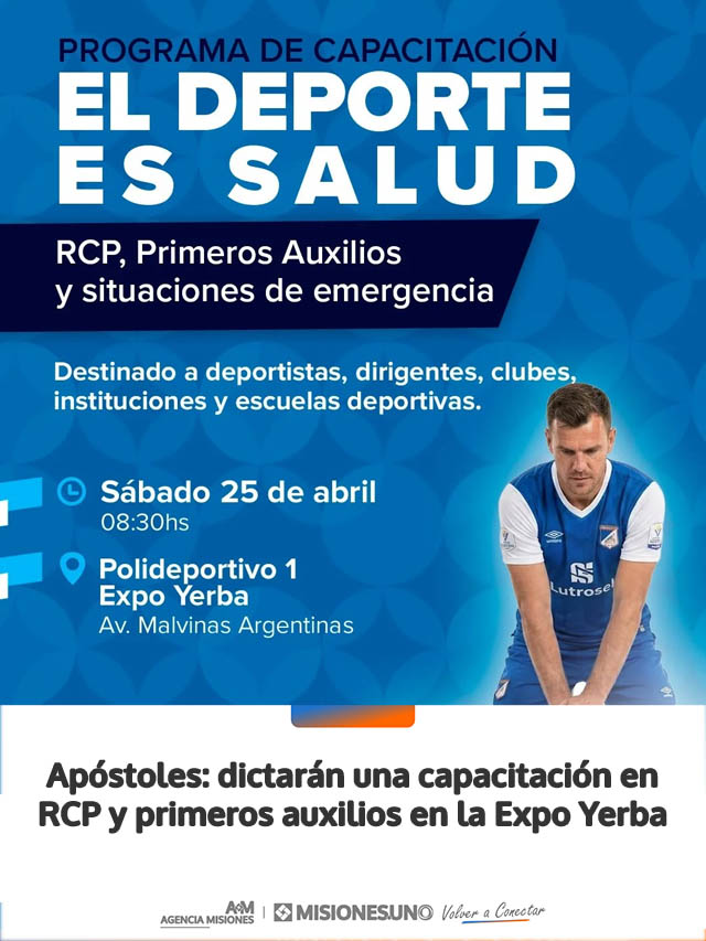 La Municipalidad de Apóstoles llevará adelante una capacitación en reanimación cardiopulmonar (RCP), primeros auxilios y atención de emergencias, en el marco de la iniciativa “El Deporte es Salud”.