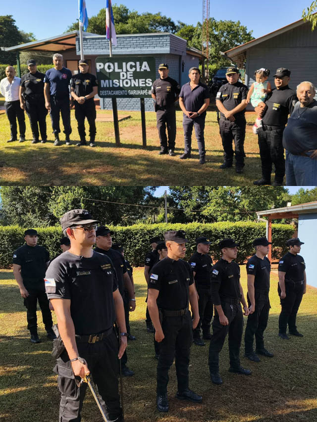 La ceremonia fue encabezada por el jefe de la Unidad Regional IV, comisario mayor Rubén Eduardo García, quien estuvo acompañado por el segundo jefe, comisario inspector Walter Daniel Olivera, y el jefe de la Comisaría de Garuhapé, comisario Fernando Gómez.