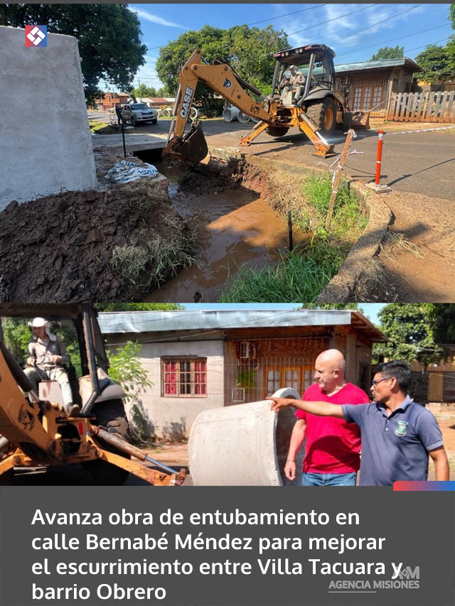 AGENCIA MISIONES.UNO | Con supervisión del intendente Claudio Filippa, la Municipalidad de Puerto Iguazú inició los trabajos de entubamiento sobre la calle Bernabé Méndez, donde ya se ejecutaron los primeros 200 metros de una obra clave para optimizar el drenaje pluvial y la transitabilidad en la zona.