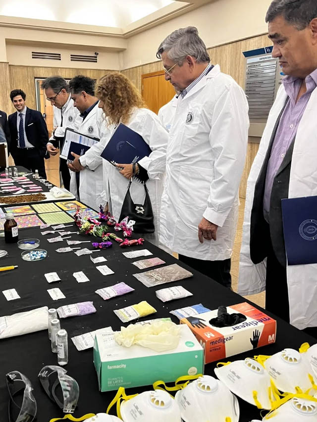 Asimismo, se llevó adelante una instancia práctica con la exhibición de laboratorios clandestinos de drogas sintéticas, como parte de un taller orientado a la capacitación de fuerzas policiales y del sistema de justicia penal, con el fin de mejorar la detección y el desmantelamiento seguro de estas estructuras.