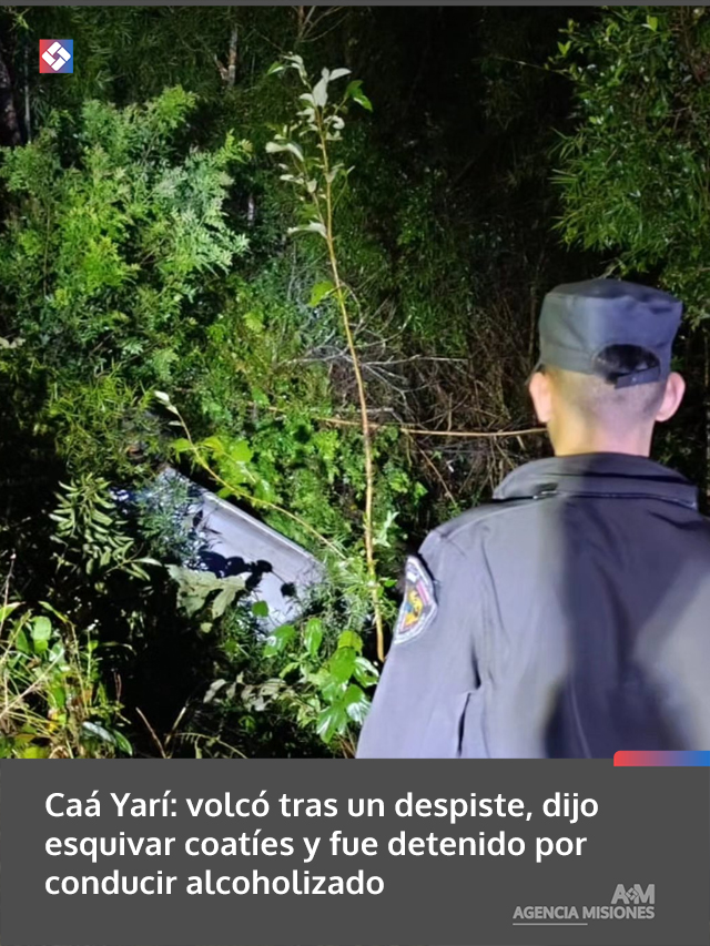 Caá Yarí: volcó tras un despiste, dijo esquivar coatíes y fue detenido por conducir alcoholizado