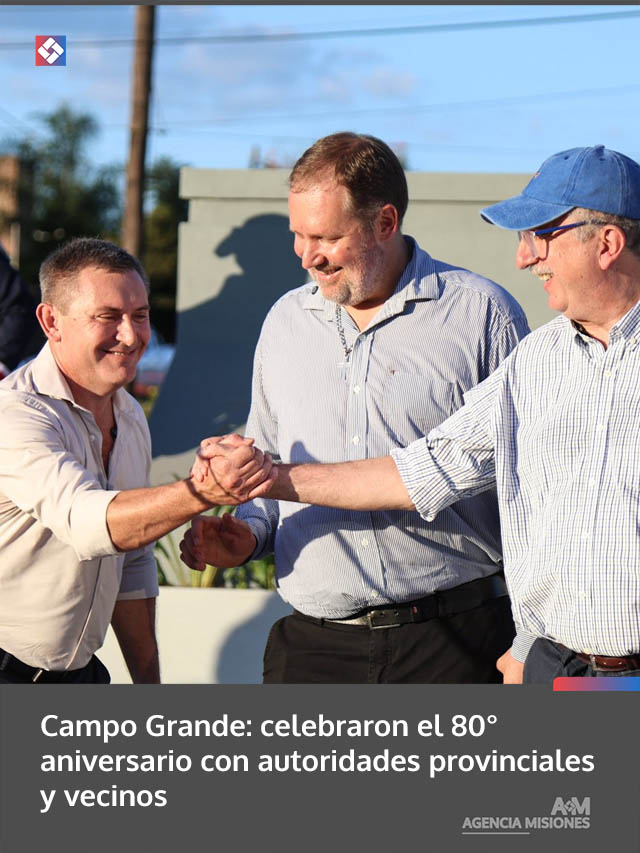 AGENCIA MISIONES.UNO | El gobernador de Misiones, Hugo Passalacqua, participó de los festejos por el 80° aniversario de Campo Grande, en una jornada que reunió a autoridades y vecinos en la Plazoleta “Los Pioneros”.