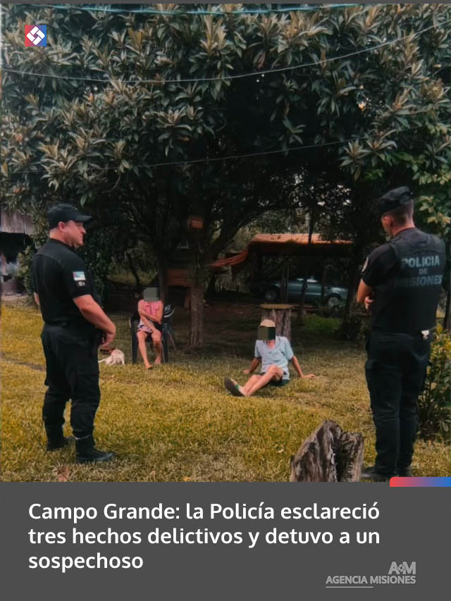 AGENCIA MISIONES.UNO | Efectivos de la Policía de Misiones avanzaron en el esclarecimiento de tres hechos contra la propiedad ocurridos en Campo Grande, tras una rápida intervención que permitió recuperar elementos sustraídos y detener a uno de los presuntos involucrados.
