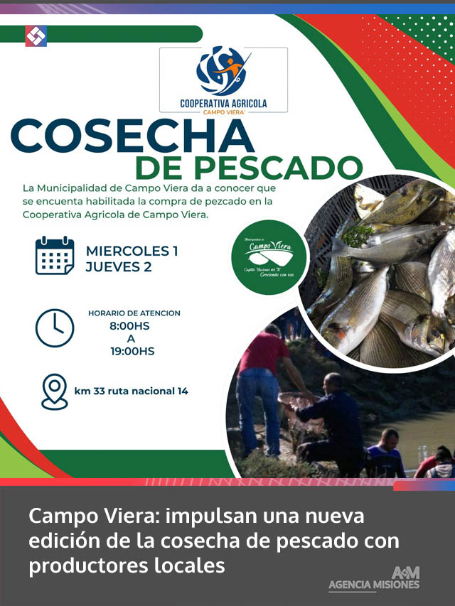 AGENCIA MISIONES.UNO | La Municipalidad de Campo Viera invita a la comunidad a participar de una nueva jornada de cosecha de pescado, una propuesta que busca fortalecer la producción local y facilitar el acceso a alimentos frescos a precios accesibles.
