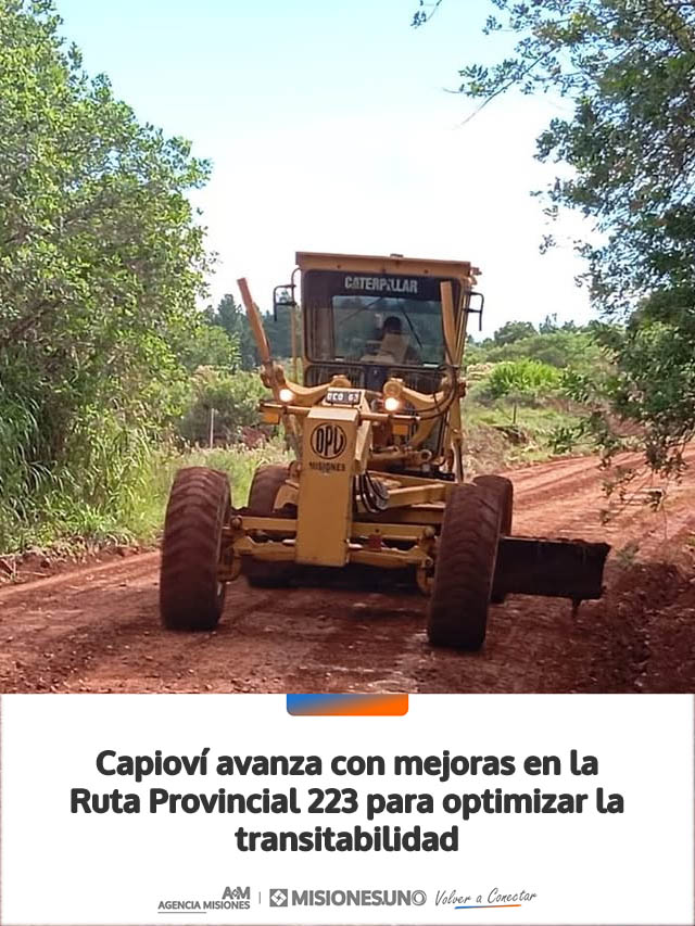 La Municipalidad de Capioví lleva adelante tareas de mejoramiento sobre un tramo de la Ruta Provincial 223, en articulación con la Dirección de Vialidad Provincial. Las acciones están orientadas a garantizar condiciones óptimas de transitabilidad para los vecinos y quienes utilizan esta vía de comunicación.