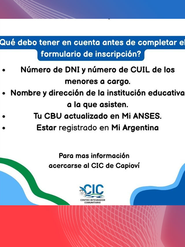 El beneficio alcanza a los niveles inicial, primario y secundario, y busca acompañar a las familias en el acceso y permanencia dentro del sistema educativo. Para completar la inscripción, se recomienda contar previamente con la documentación y los datos necesarios, a fin de evitar inconvenientes durante el proceso.