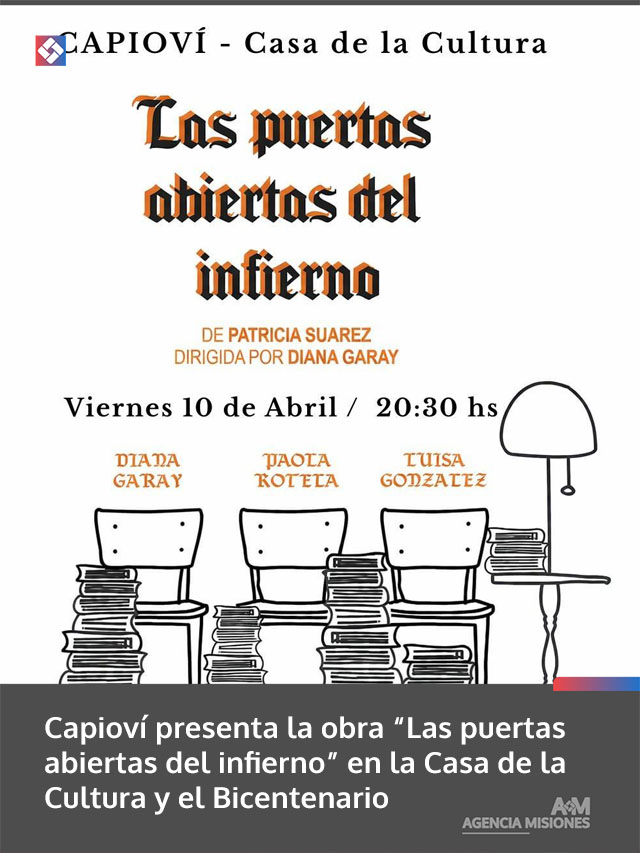 AGENCIA MISIONES.UNO | El próximo viernes 10 de abril a las 20.30 horas se presentará en la Casa de la Cultura y el Bicentenario de Capioví la obra teatral “Las puertas abiertas del infierno”, con el acompañamiento del Instituto Nacional del Teatro, la Municipalidad local y el Instituto Provincial del Teatro Independiente.