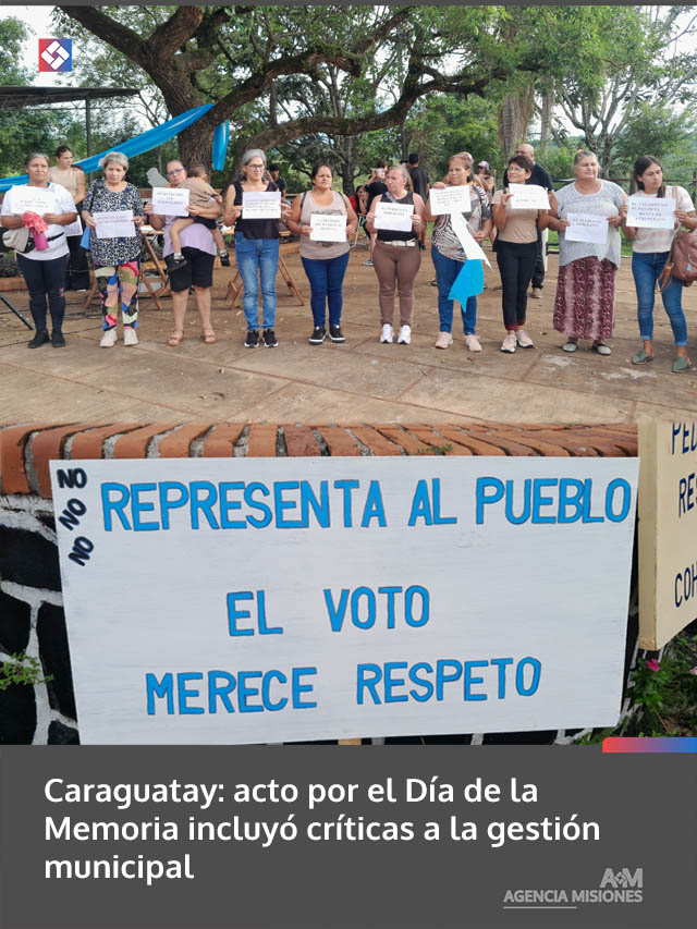 AGENCIA MISIONES.UNO | En el marco del 24 de marzo, vecinos de Caraguatay realizaron un acto pacífico por el Día de la Memoria, la Verdad y la Justicia, donde además de la conmemoración histórica se expusieron cuestionamientos a la actual situación política del municipio.