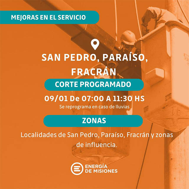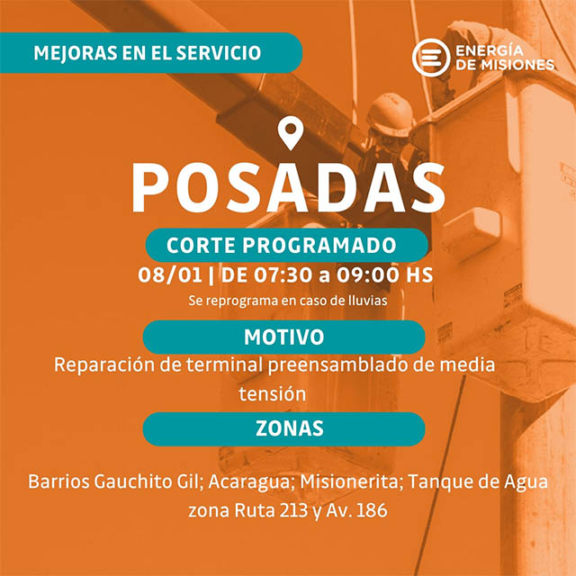 Energía de Misiones informó que este miércoles 7 de enero [...]