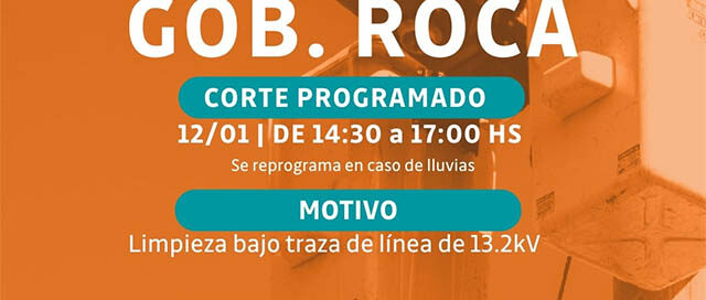 Anuncian corte programado de energía por tareas de mantenimiento en Gob. Roca