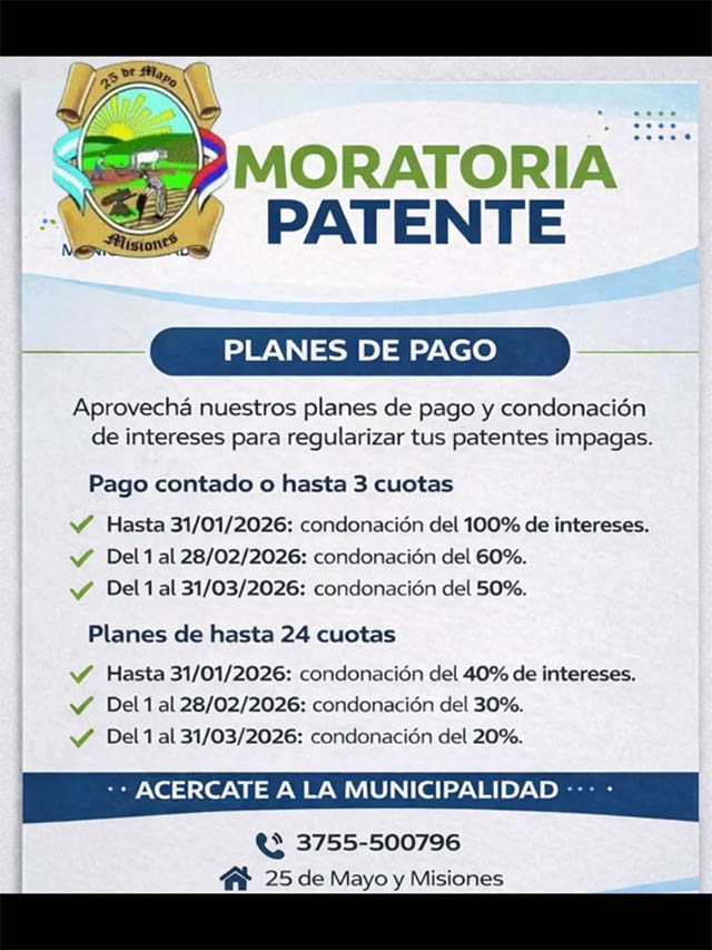25 de Mayo lanzó una moratoria para regularizar patentes con quita de intereses