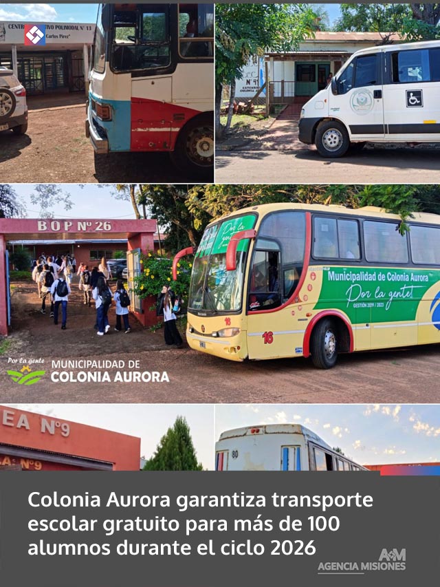 AGENCIA MISIONES.UNO | La Municipalidad de Colonia Aurora confirmó que continuará brindando el servicio gratuito de transporte escolar durante todo el ciclo lectivo 2026, alcanzando a más de 100 estudiantes de distintas zonas del municipio y de la aldea.