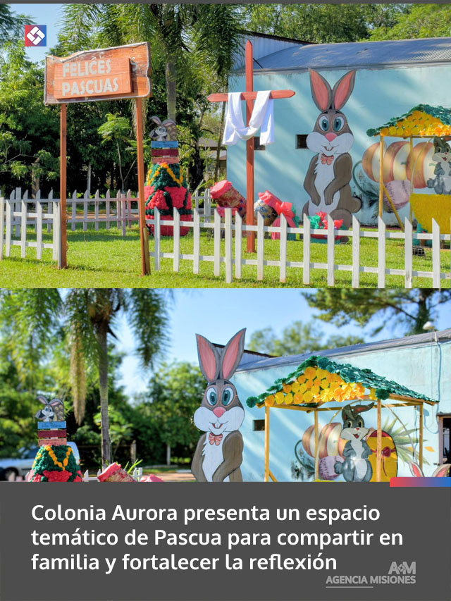 AGENCIA MISIONES.UNO | La Municipalidad de Colonia Aurora impulsó la creación de un espacio temático con adornos alusivos a la Pascua, con el objetivo de transmitir un mensaje de fe y esperanza, además de generar un lugar de encuentro para vecinos y familias.