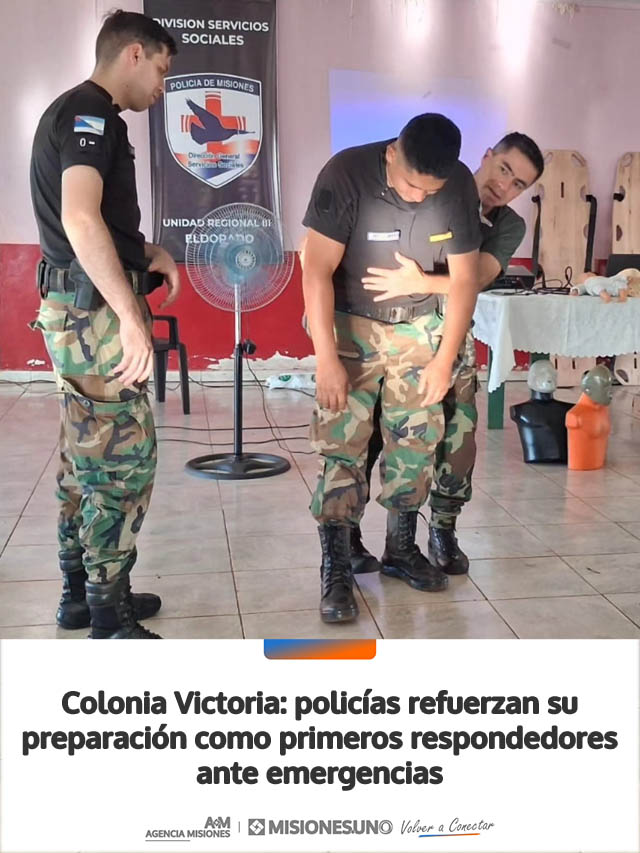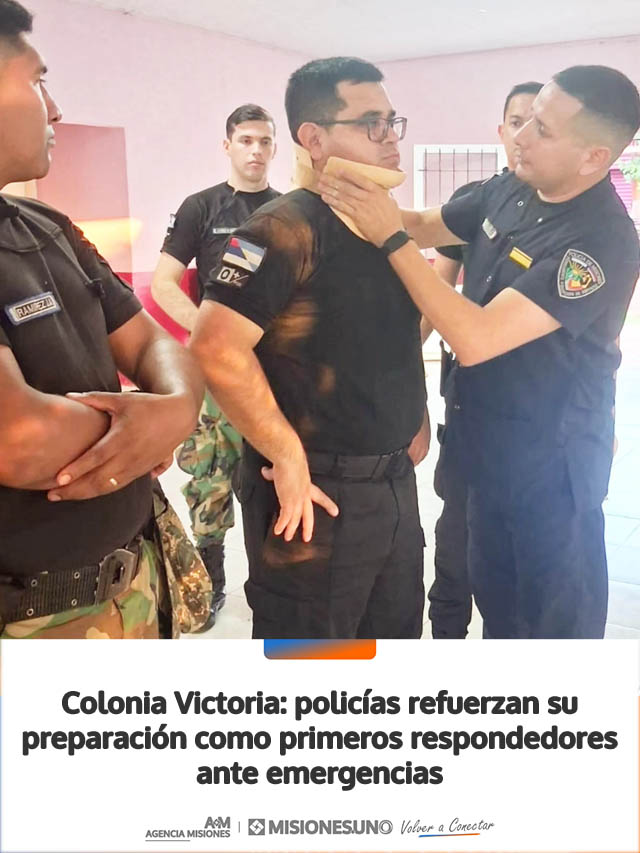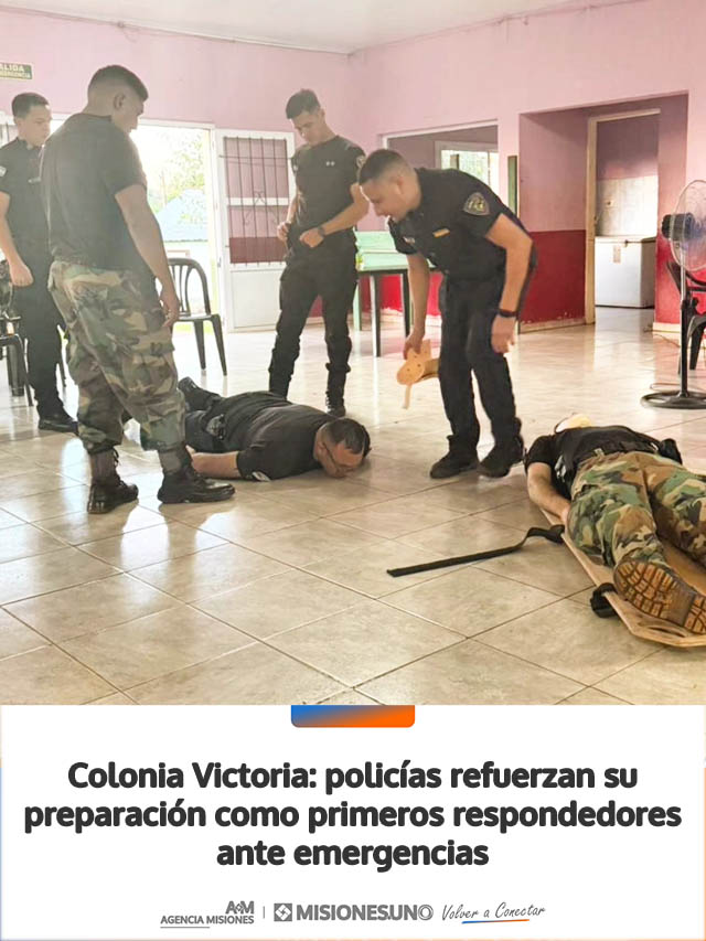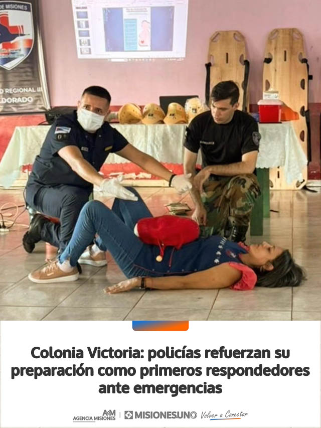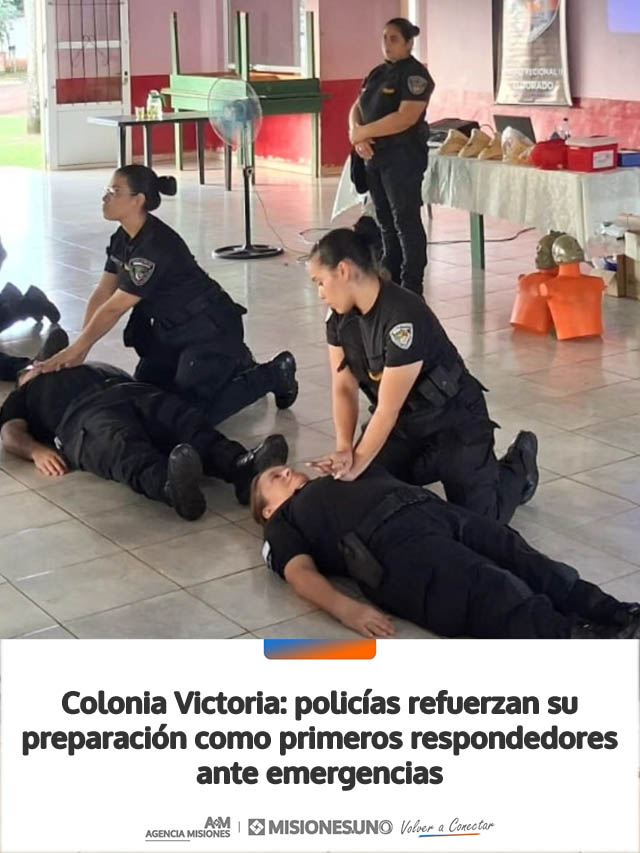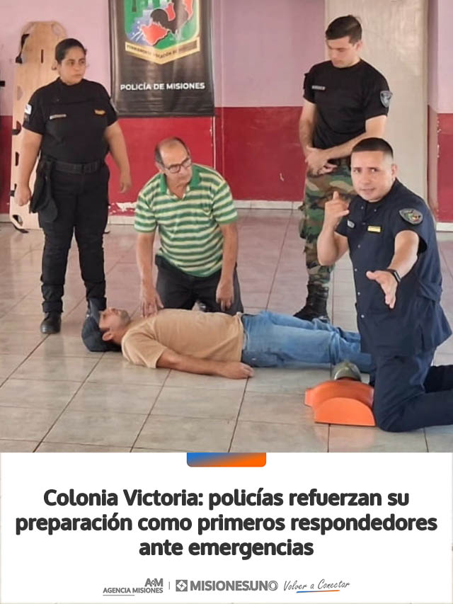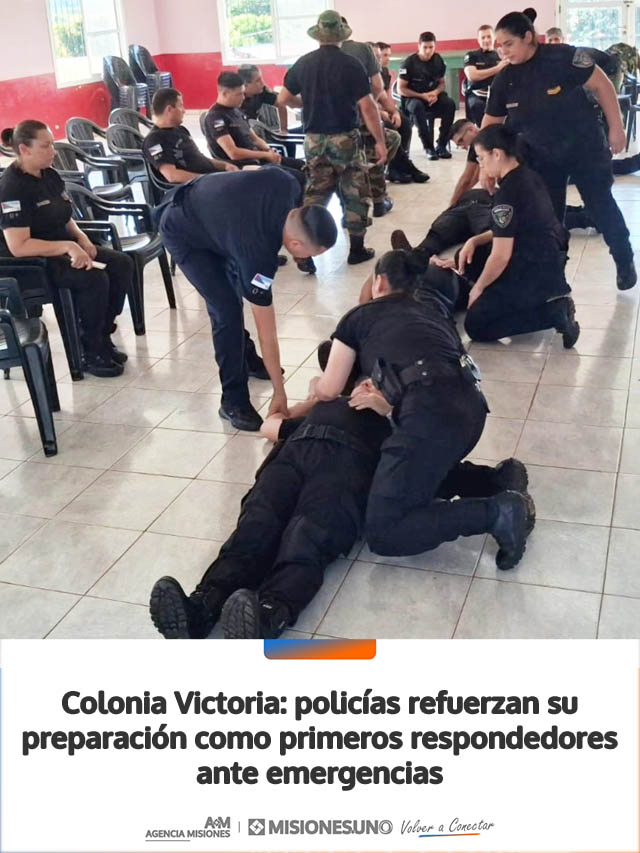 AGENCIA MISIONES.UNO | Efectivos de la Policía de Misiones participaron de una jornada de capacitación en primeros auxilios en Colonia Victoria, con el objetivo de fortalecer su intervención inmediata ante situaciones críticas en la vía pública y domicilios.