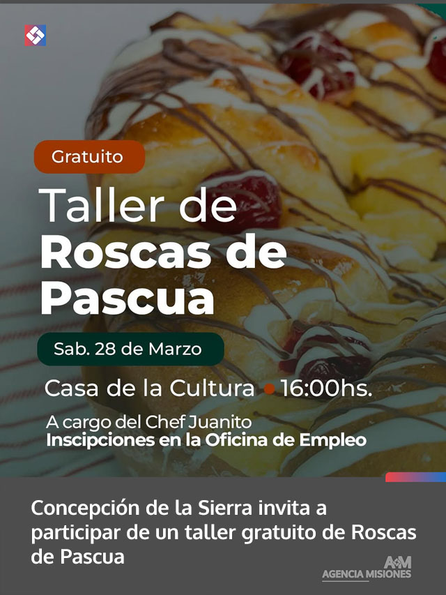 AGENCIA MISIONES.UNO | En el marco de las actividades por Semana Santa, se realizará en Concepción de la Sierra un taller gratuito de elaboración de roscas de Pascua, abierto a la comunidad.