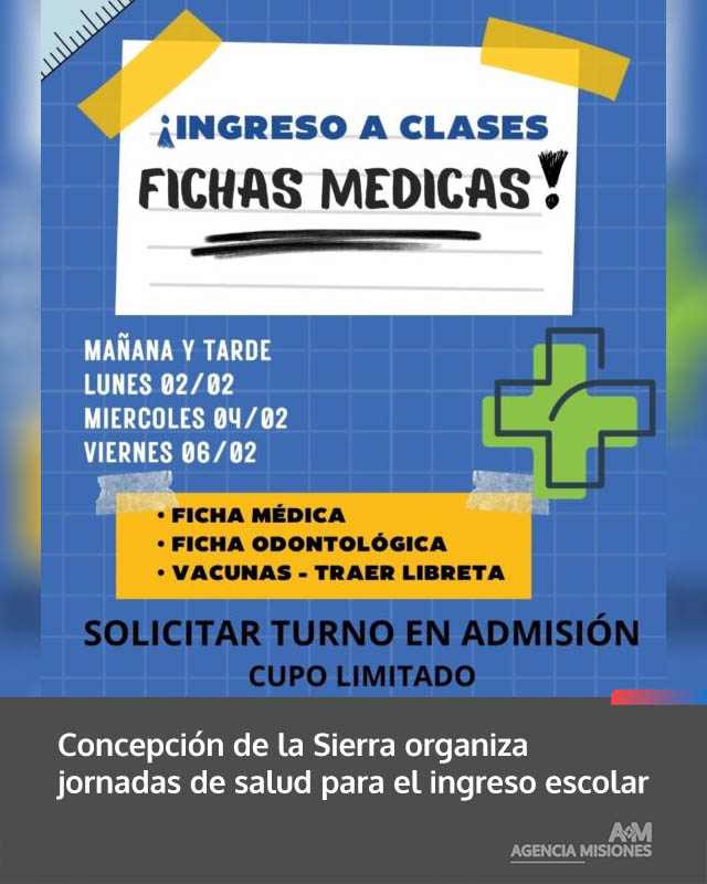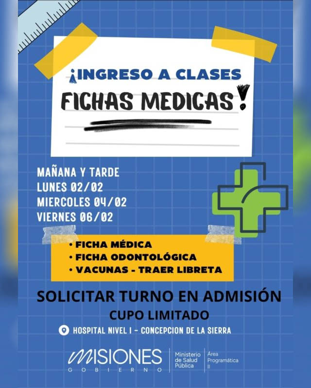 AGENCIA MISIONES.UNO | El Hospital Nivel I de Concepción de la Sierra programó jornadas especiales para la realización de fichas médicas escolares, requisito obligatorio solicitado por los establecimientos educativos de la provincia.