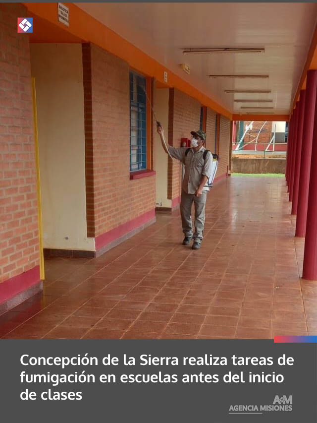 AGENCIA MISIONES.UNO | La Municipalidad de Concepción de la Sierra lleva adelante trabajos de fumigación en los edificios escolares de la localidad con el objetivo de garantizar espacios seguros y en condiciones para el regreso a las aulas.