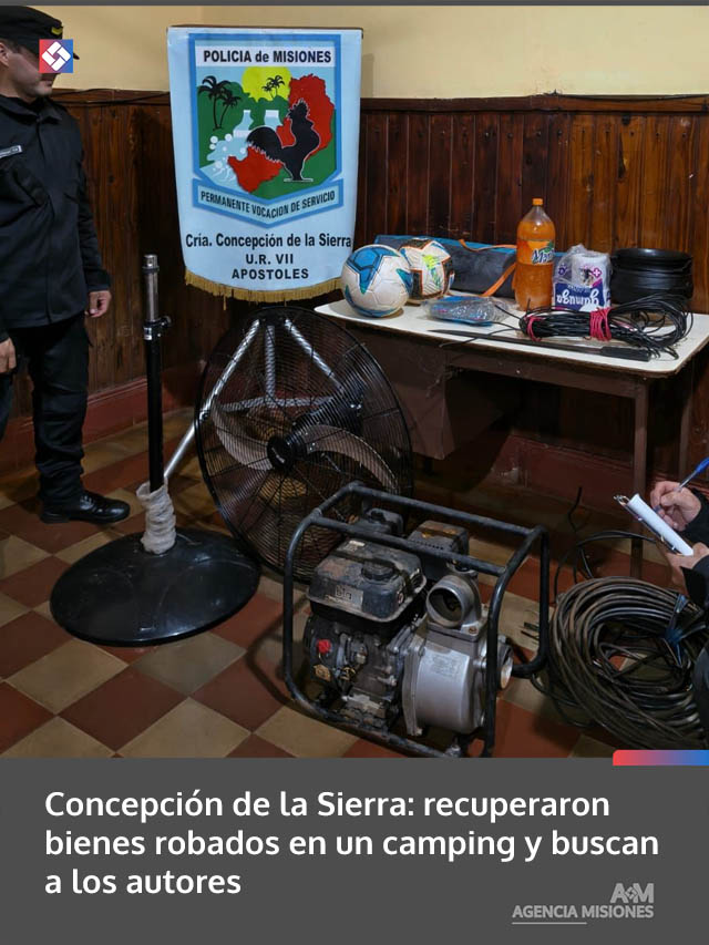 AGENCIA MISIONES.UNO | La Policía de Misiones logró recuperar parte de los elementos robados en un camping ubicado sobre el arroyo El Tigre y avanza en la identificación y localización de los responsables, quienes serían lugareños.