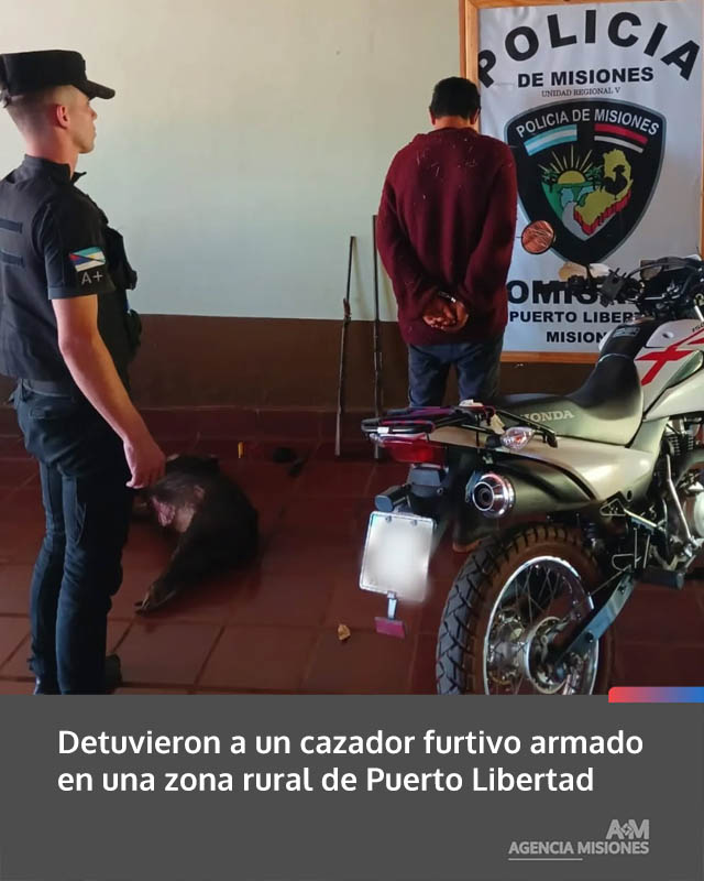 AGENCIA MISIONES.UNO | Un hombre fue detenido en una zona rural de Puerto Libertad tras ser sorprendido practicando caza furtiva y portando armas de fuego, luego de un operativo realizado por efectivos policiales en el paraje Tirica.