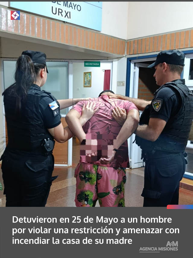 AGENCIA MISIONES.UNO | El acusado, de 35 años, desobedeció una orden judicial de prohibición de acercamiento, amenazó de muerte a su madre y advirtió que prendería fuego la vivienda. Fue detenido tras un rápido operativo policial.