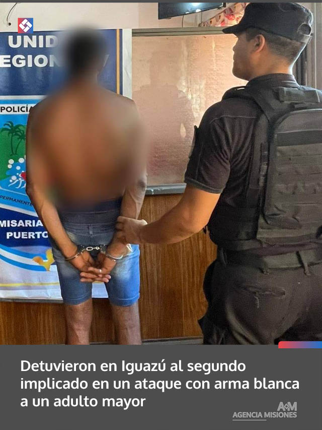 El procedimiento fue realizado sobre la avenida Eduardo Reynoso por efectivos de la Comisaría de la Mujer de la Unidad Regional V, en el marco de la investigación por un robo agravado en perjuicio de un hombre de 85 años, registrado el pasado 18 de enero. Por el mismo hecho, una mujer de 28 años permanece detenida. Al momento de la aprehensión, el sospechoso tenía en su poder un cuchillo, el cual fue secuestrado para las pericias correspondientes.