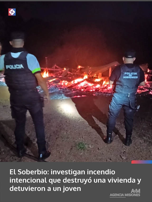 AGENCIA MISIONES.UNO | Un presunto incendio intencional consumió por completo una vivienda de madera en el paraje Cristal 2, en la localidad de El Soberbio, y por el hecho fue detenido un hombre de 22 años, señalado como el presunto autor del ataque.