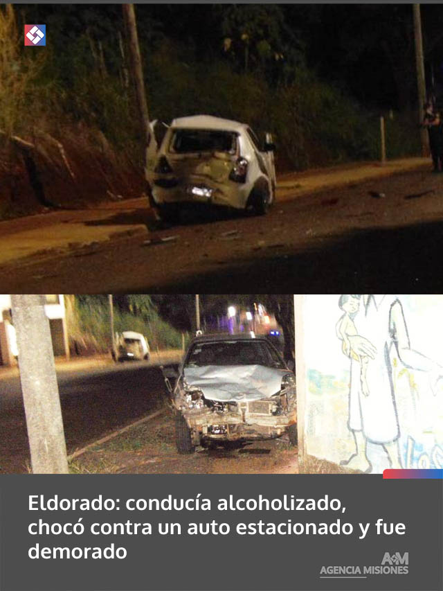 AGENCIA MISIONES.UNO | Un siniestro vial ocurrido durante la madrugada en la ciudad de Eldorado terminó con la demora de un conductor que circulaba en estado de ebriedad, luego de colisionar contra un vehículo que se encontraba estacionado.