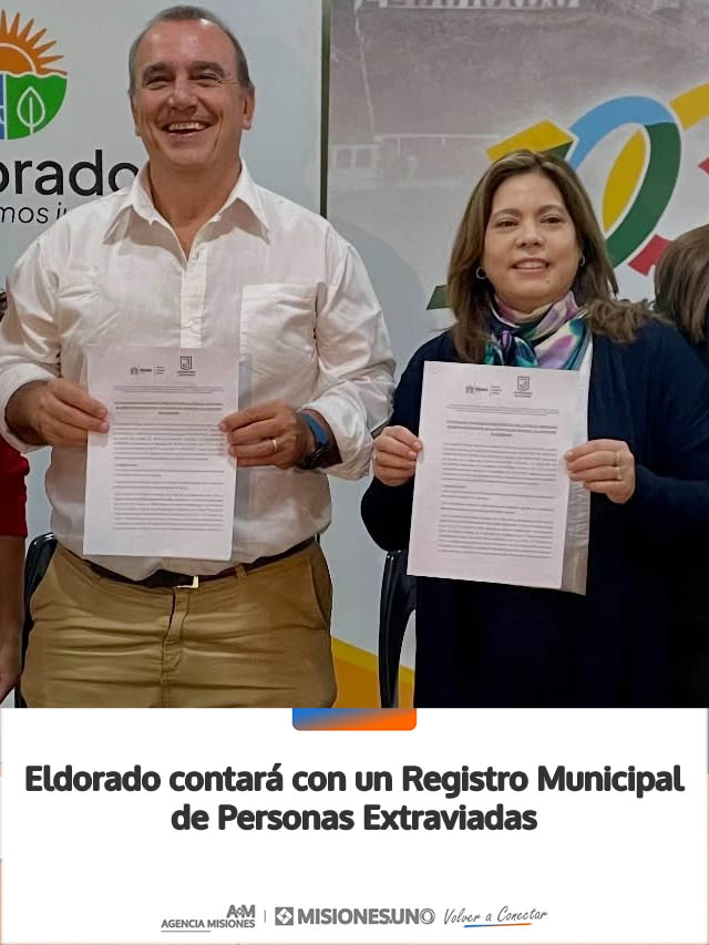 El municipio de Eldorado implementará su propio Registro de Personas Extraviadas tras la firma de un convenio de cooperación interinstitucional con el Ministerio de Derechos Humanos de Misiones.