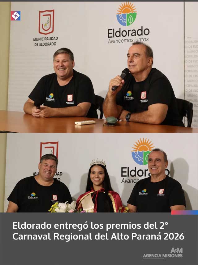 AGENCIA MISIONES.UNO | Se realizó la entrega simbólica de premios a las comparsas destacadas del 2° Carnaval Regional del Alto Paraná 2026, consolidando a Eldorado como epicentro de esta expresión cultural en el norte de la provincia.