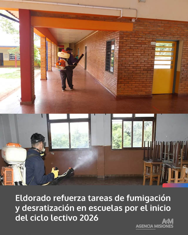 AGENCIA MISIONES.UNO | En el marco de los preparativos para el comienzo del ciclo lectivo 2026, el Municipio de Eldorado desarrolla acciones preventivas de fumigación y control de plagas en los establecimientos educativos de la ciudad.