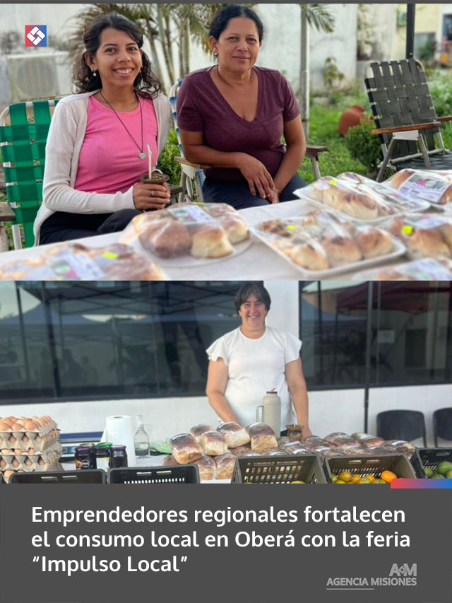 En la ciudad de Oberá se llevó adelante una nueva jornada de la feria “Impulso Local”, donde emprendedores provenientes de Campo Viera, Aristóbulo del Valle y la propia localidad ofrecieron sus productos sobre la vereda del edificio municipal. La propuesta reunió una amplia variedad de alimentos, entre ellos panificados, pastas frescas, lácteos, frutas, verduras y productos envasados.