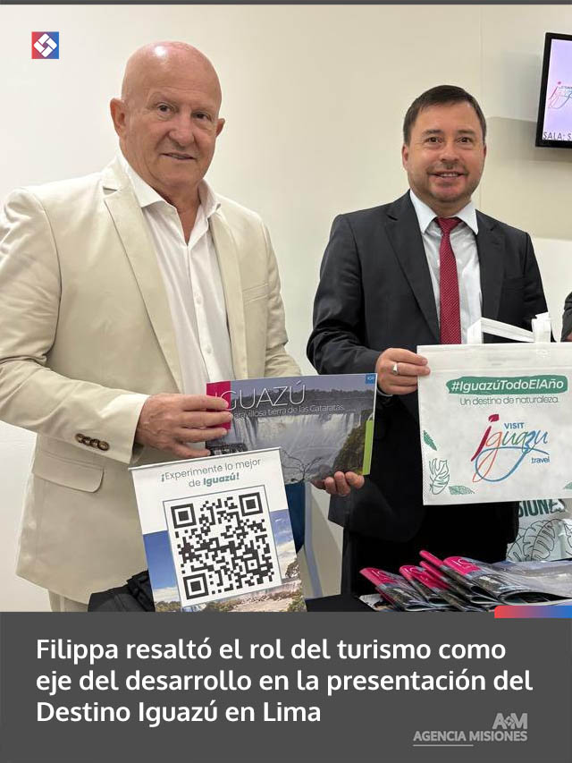 AGENCIA MISIONES.UNO | El intendente de Puerto Iguazú, Claudio Filippa, y el presidente del Ente Municipal de Turismo, Leopoldo Lucas, participaron de la presentación del Destino Iguazú en Lima, Perú, como parte de una acción de promoción internacional orientada a fortalecer el posicionamiento del destino en mercados estratégicos y consolidar su conectividad aérea.