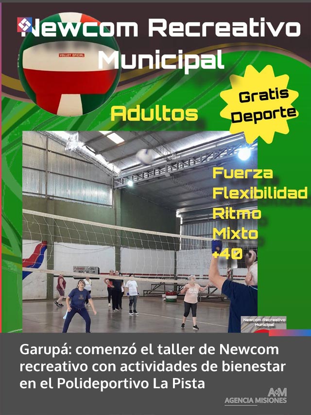AGENCIA MISIONES.UNO | En Garupá se puso en marcha un taller de Newcom recreativo que combina actividad física, masajes y un espacio de encuentro social. La propuesta se desarrolla todos los jueves desde las 8 de la mañana en el Polideportivo La Pista y está abierta a quienes deseen participar de una jornada deportiva y recreativa.