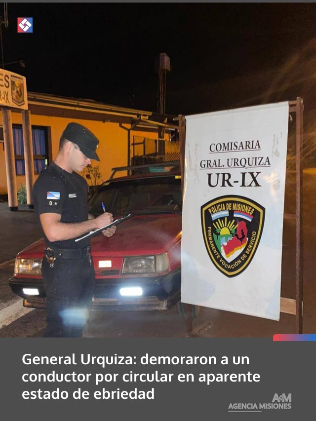AGENCIA MISIONES.UNO | Un hombre de 54 años fue demorado en General Urquiza luego de ser interceptado por la Policía mientras conducía un vehículo realizando maniobras peligrosas en el barrio Industrial y presentaba signos de haber consumido alcohol.