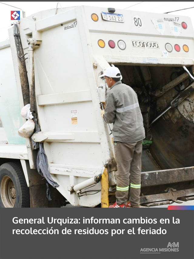 AGENCIA MISIONES.UNO | La Municipalidad de General Urquiza comunicó modificaciones en el servicio de recolección de residuos en distintos barrios, debido al feriado del viernes 3 de abril.