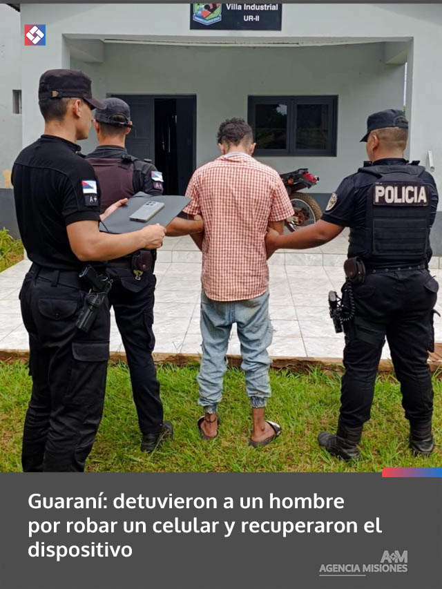 El operativo fue realizado este jueves alrededor de las 15:30 por efectivos de la Comisaría de Guaraní, quienes lograron esclarecer el hurto denunciado por un joven del barrio Oleaga. Según relató la víctima, días atrás había dejado su celular sobre un muro y, tras retirarse una persona conocida del lugar con notorio apuro, constató que el aparato ya no se encontraba.