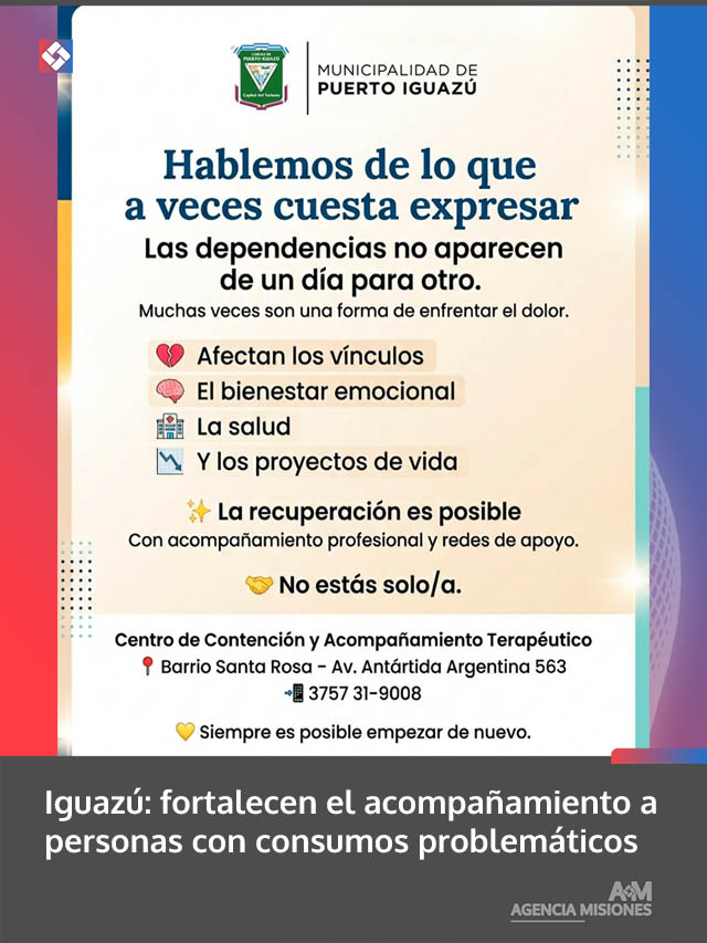 La Municipalidad de Puerto Iguazú impulsa acciones de acompañamiento destinadas a personas que atraviesan situaciones vinculadas a consumos problemáticos, promoviendo espacios de escucha y contención.