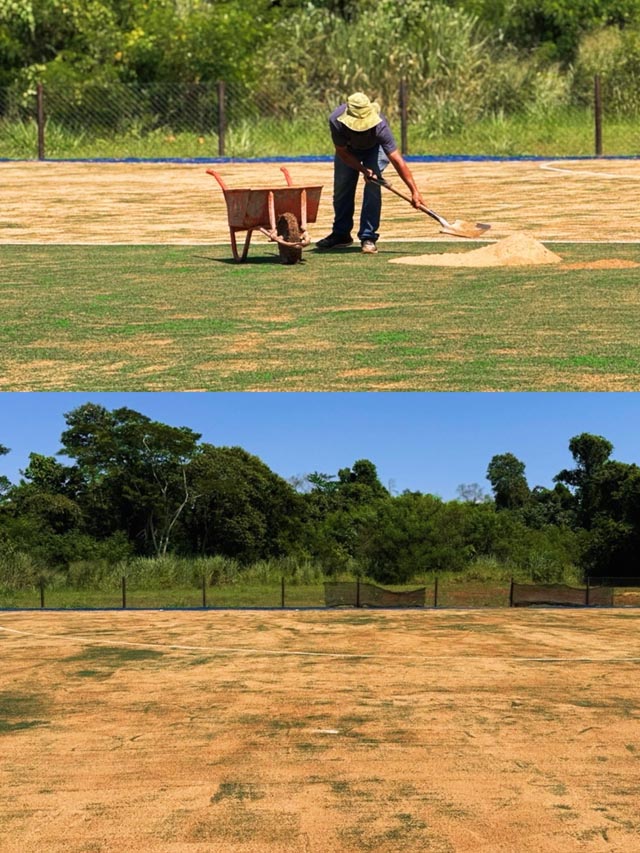 Los trabajos incluyeron la reposición y nivelación de arena en la superficie de juego, una intervención necesaria para optimizar el estado del campo y garantizar mejores condiciones para los entrenamientos y actividades deportivas que se desarrollan en el lugar.