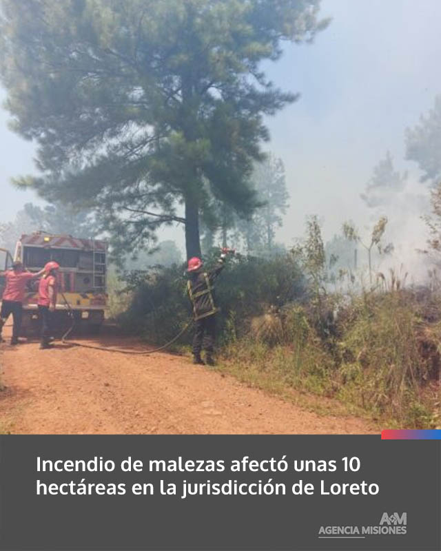AGENCIA MISIONES.UNO | Un incendio de malezas se registró en la jurisdicción de la Comisaría de Loreto y demandó la intervención de efectivos policiales y bomberos para controlar el avance de las llamas en una zona rural.