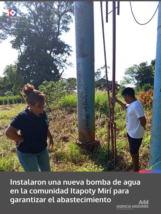 AGENCIA MISIONES.UNO | La Dirección Municipal de Asuntos Guaraníes acompañó a la comunidad Itapoty Mirí con la colocación de una nueva bomba de agua, luego de que la anterior fuera afectada por un incendio, garantizando así el abastecimiento en la zona.