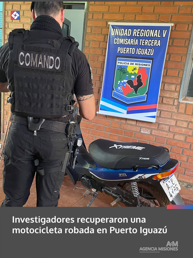 Investigadores recuperaron una motocicleta robada en Puerto Iguazú