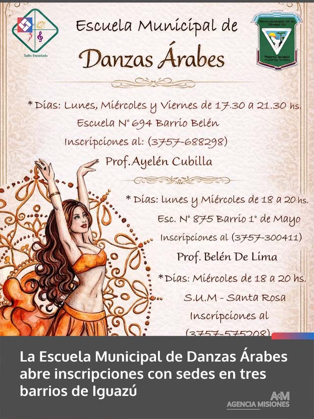 AGENCIA MISIONES.UNO | La Dirección de Cultura invita a la comunidad a sumarse a la Escuela Municipal de Danzas Árabes, una propuesta gratuita y descentralizada que busca garantizar el acceso a la formación artística en distintos barrios de la ciudad.