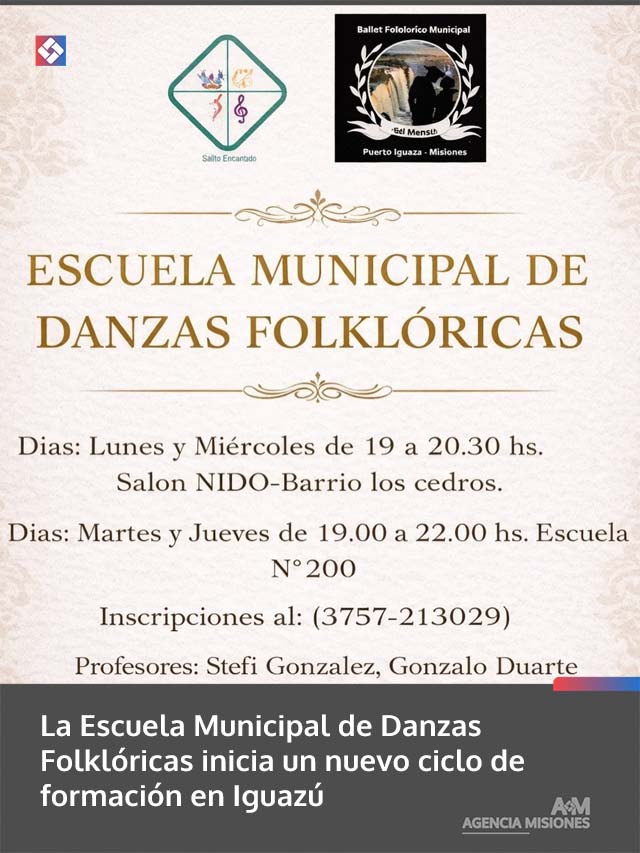 AGENCIA MISIONES.UNO | La Dirección de Cultura puso en marcha un nuevo ciclo de la Escuela Municipal de Danzas Folklóricas, un espacio de formación destinado a mantener vivas las tradiciones y fortalecer la identidad cultural a través de la música y el movimiento.