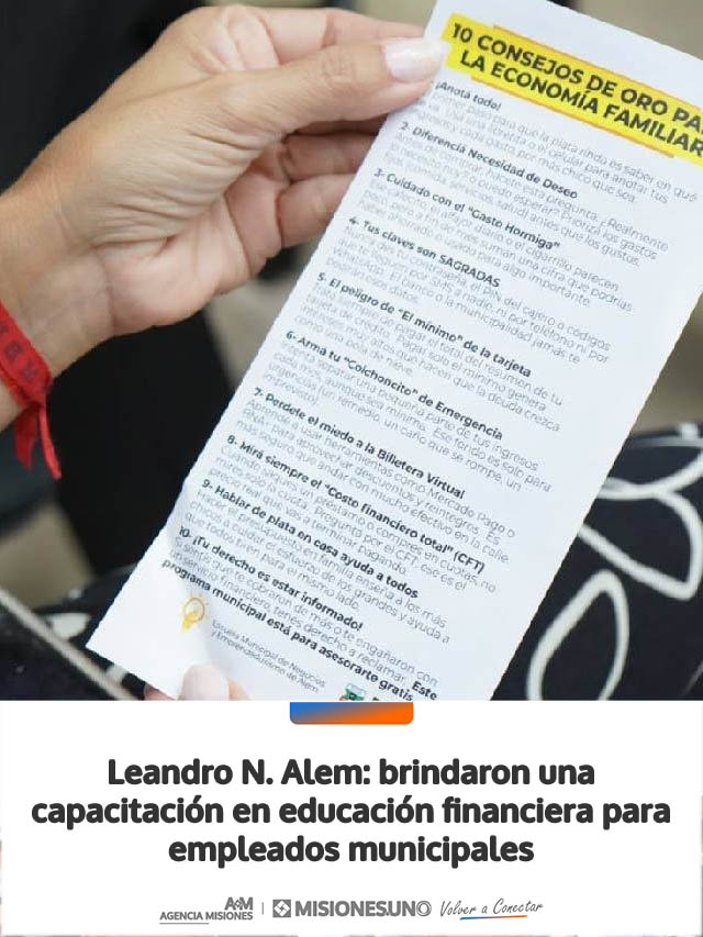 La Municipalidad de Leandro N. Alem llevó adelante la capacitación “Educación financiera a tu alcance”, destinada a empleados municipales, con el objetivo de fortalecer herramientas para la administración de la economía personal y familiar.