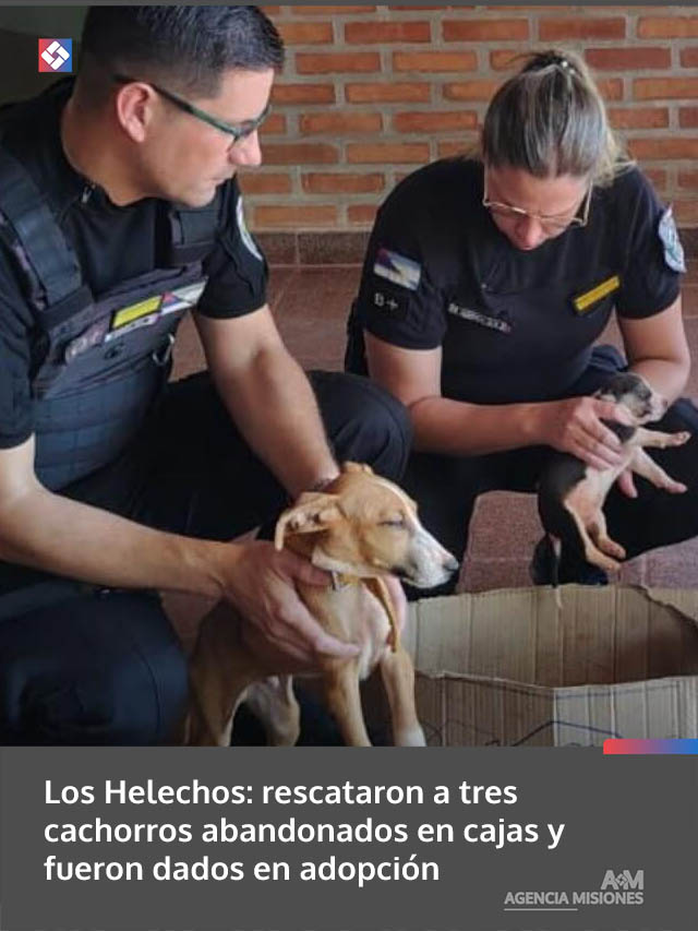 AGENCIA MISIONES.UNO | Efectivos de la Comisaría de Los Helechos intervinieron tras el hallazgo de tres cachorros mestizos que habían sido abandonados en cajas en distintos puntos de la localidad.